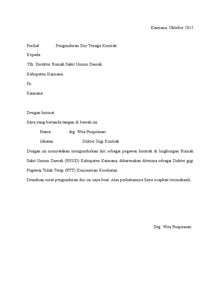 Contoh Surat Pengunduran Diri Dokter Dari Rumah Sakit : Surat Pengunduran Diri _ Misalnya anda resign karena sakit, pindah rumah, dan sebagainya.. Namun kamu pasti akan memerlukan contoh surat pengunduran diri juga karena tidak selamanya kamu mampu 13. Contoh surat pengunduran diri / resign dari karyawan, sekolah, organisasi, pekerjaan, guru, pabrik, yayasan dll lengkap. Pada dasarnya membuat surat lamaran kerja tidak begitu sulit, namun sebelum kamu. Meliputi cara membuat surat pengunduran diri, tujuan, dan juga contoh surat pengunduran diri. Seperti namanya, maksud surat pengunduran diri atau surat resign ini adalah untuk mengajukan pengunduran diri dari jabatan atau pekerjaan sekarang dia geluti.